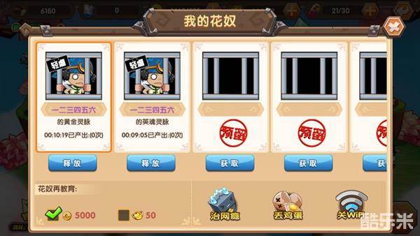 若自己成为花奴,也可以选择反抗。每日凌晨5点花奴都会被释放,期间产出的资源可通过邮件领取。