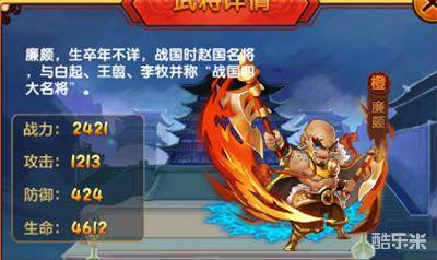 热血三国志ol廉颇需要什么武器?热血三国志ol廉颇值得培养吗?热血三国志ol廉颇新手能养吗?一起来看看!