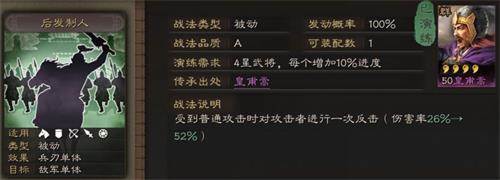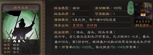 分析:输出能力极强的反击战法,如果给肉盾武将配备就能做一个强力的输出肉盾。