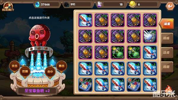 【法宝升灵】消耗晶石和玄铁可对法宝进行升灵以提升属性,每十级需要消耗突破石进行突破,突破后可大幅提升法宝属性