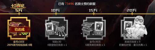 除了无限抽卡的超级buff,新服还为所有参与预约的骑士们准备了启程好礼,在预约人数达成后就会在新服全服发放。