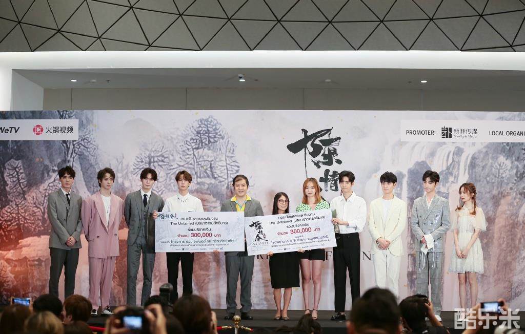 出席的主演们在见面会之前事先参加了发布会。发布会上,《陈情令》剧组携众主演为现今面临洪灾的泰国捐款60万泰铢助力乌汶民众,这件事被据泰国新泰日报社报道,获众多中泰粉丝点赞。