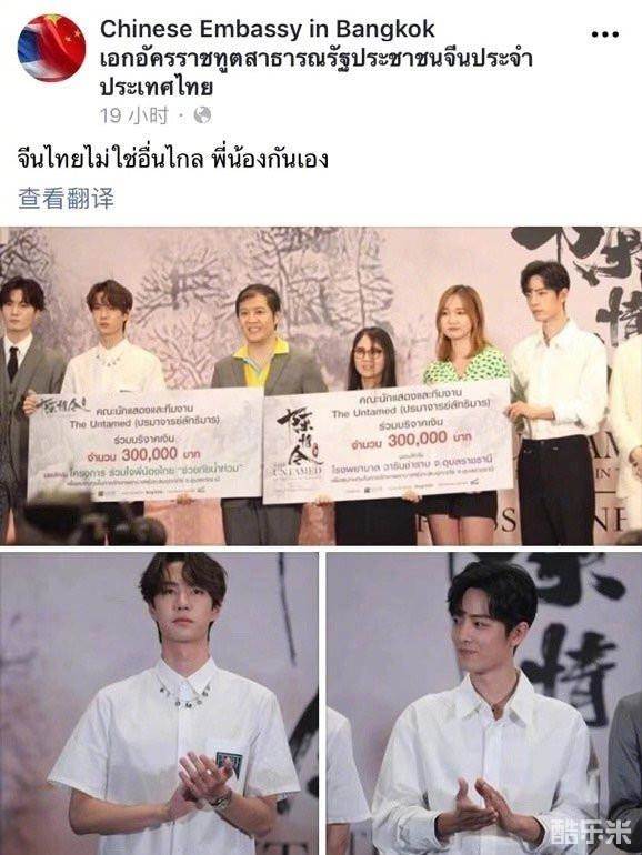 于此同时,包括PPTV、TNN、INN、Komchadluek、Dailynews、Nineentertain、Naewna、Tvpoolonline、泰叻报等在内的多家泰国媒报道陈情令剧组捐款抗洪救灾善举,中国驻泰国大使馆也发微博表示:“中国,泰国,不遥远!”