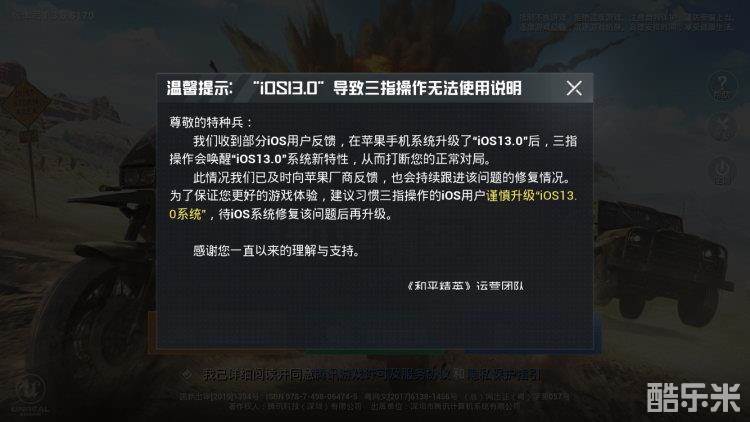 腾讯《和平精英》提醒玩家谨慎升级iOS 13 简直没法玩