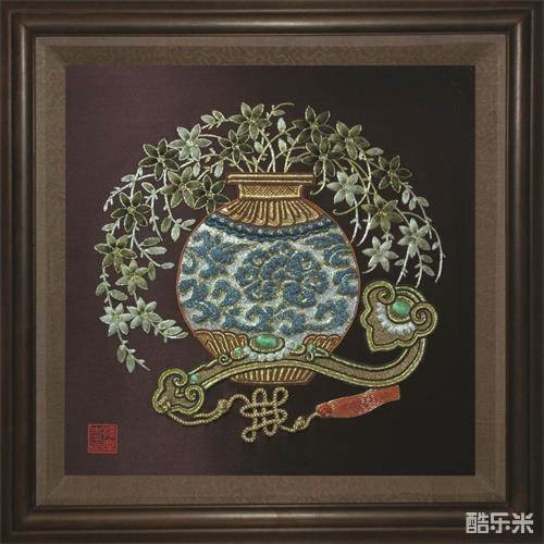 孙庆先代表作品《如意瓶》(国家旅游总局赠送美国商务部长的金银丝线垫绣)