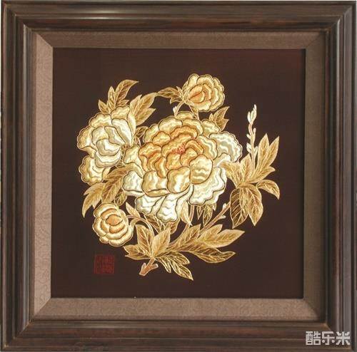 孙庆先代表作品《金牡丹》(吴仪副总理出访俄罗斯赠送普京总统的金丝垫绣)