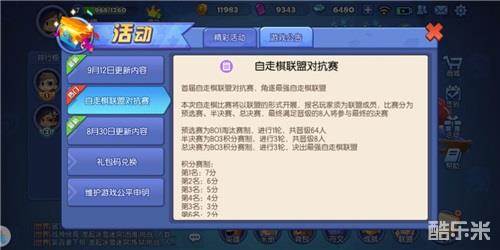 根据参赛人员数量可能会存在轮空,积分赛中若积分相同,以首轮的名次晋级,如经过3轮,A和B均获得了18分,但是A在第1轮的名次比B靠前,因此A晋级,中途退赛将取消个人和联盟奖励。