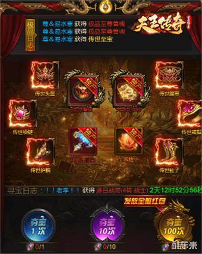 宝藏赠美人,参与寻宝即有机会获得珍稀装备,寻宝次数达到指定次数可获得传世宝箱、神羽等等惊喜道具!郭富城真是深谙追女之道啊,小编佩服!