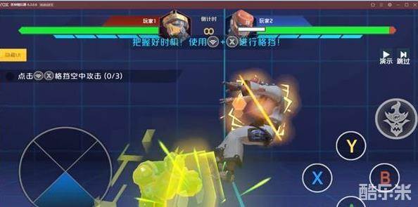 功能键分为X(轻击,多次按下可以连击)、Y(特殊攻击,无连击)、A(跳跃,这个键是单独的跳跃键,配合左右键实现前跳、后跳)、B(闪避,消耗1格防御值,配合左右键实现前闪、后闪)和大招键(是的,就是一键大招!普通大招消耗3格防御值,红血状态按↓+大招可消耗5格防御值使用MAX大招,伤害爆表)