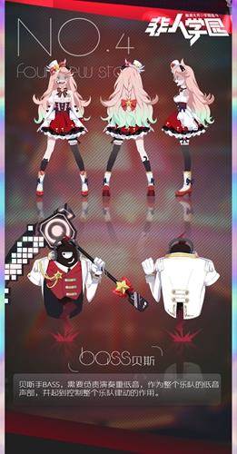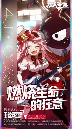 学园专属少女偶像乐队“4un”正式成立,琰萝变身贝斯手撩人心弦!为了这次的乐队演出,琰萝特地穿上来自乐队【BASS】的华丽时装,除了少女偶像的青春活力,更带着她独特的哥特风格。她将用来自冥界的重低音,燃烧生命的狂意!
