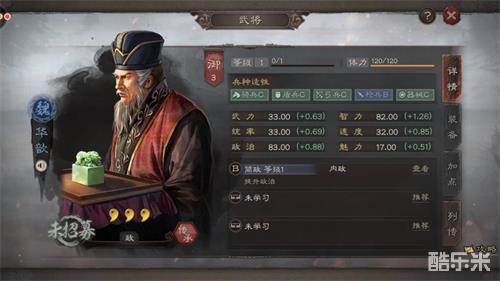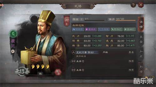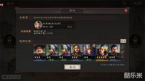 在前期委任内政官方面,使用三星或者四星的文臣就可以了,而后期得到更高级别,例如五星的文臣,就可以用来替换并培养,而加点按需求加政治或魅力,前期有的文臣效果是很不错的,值得推荐,比如糜竺(政治134)政治值较高,可以作为主政官;华歆(政治值138),可以作为资源官与生产官;陈琳(政治值133)也值得推荐,而到了后期,就可以启用魅力值高的官员,外出寻宝。