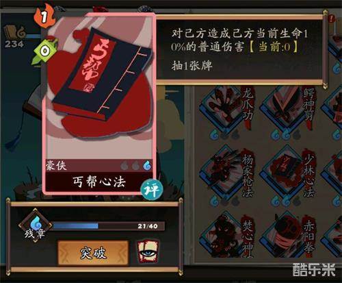 抽牌用卡需要 丐帮心法 两张 需要升级 升级后 0费