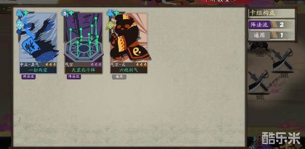 进图优先删除寒冰功,升级六绝剑气;利用段誉武学渡过前期,遇到灵蛇引和无相内功可拿(一张足够),同时精简卡组,后期两阵+六绝+一扫而空+真气便足够。如图为成型卡组(极简):