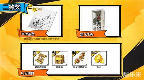 2. 点击【抽大奖】即有机会获得包括全套草帽海盗团声优签名的超级大礼。