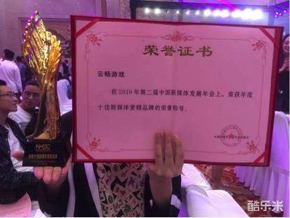 云畅游戏荣膺第二届中国新媒体发展年会十佳新媒体营销品牌称号