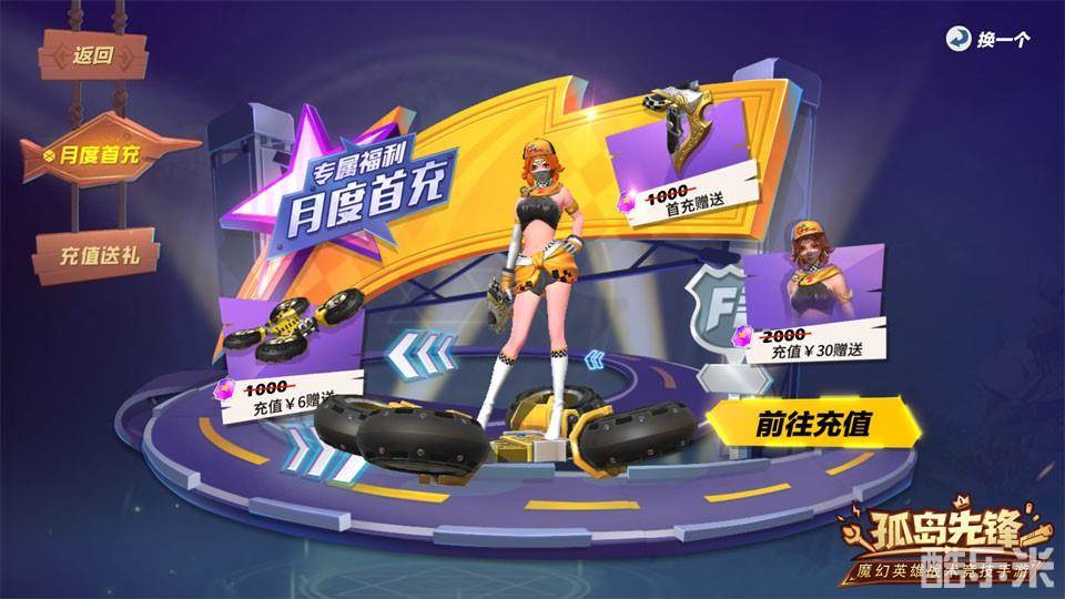 新增的月度首充奖励更是将锦上添花做到了极致,暗影舞者的英雄皮肤—赛道倩影、专属武器皮肤—飞驰丽影以及飞行器皮肤—狂野暴风,将青春与赛车的动感之美展现得格外动人。