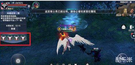 3)进入场景后,左侧将有活动提醒,本层副本的结束倒计时,以及四个迷宫卫士长的出现倒计时