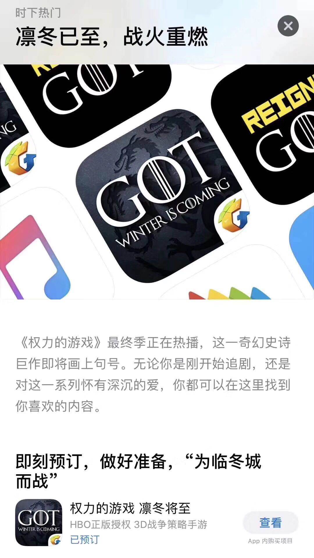 IP的光环效应、品质把控的延续,使得《权力的游戏 凛冬将至》手游也在App Store上多次荣登热门、编辑推荐等板块。早在游戏上线之前,《权力的游戏 凛冬将至》手游就入选App Store时下热门榜;如今,游戏上线后再获App Store官方推荐,缔造了2019年首款获此殊荣的SLG品类游戏的好成绩。