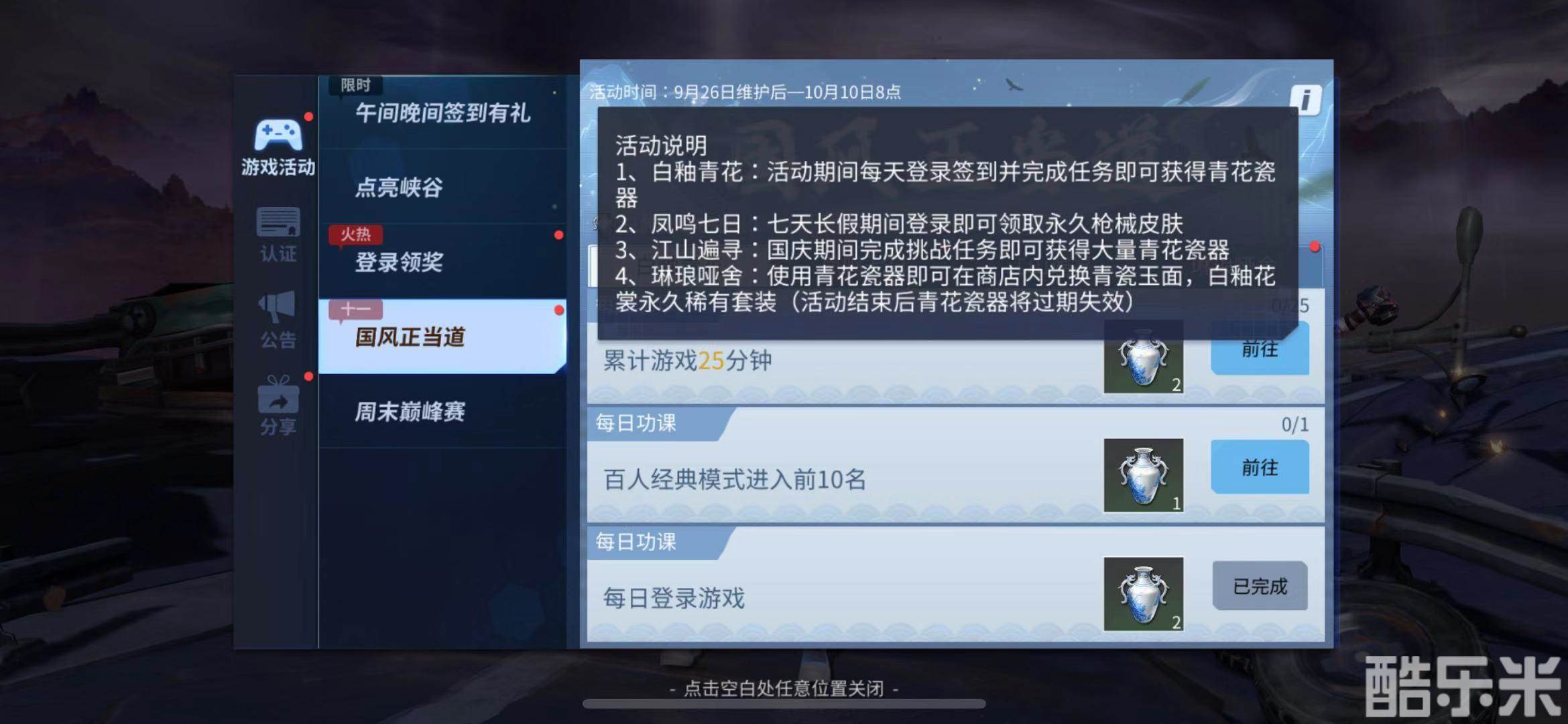 国庆签到换好礼永久青花瓷系列枪械免费拿