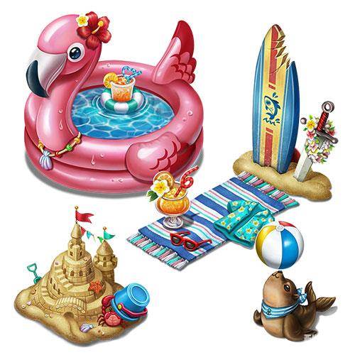关于海滩的记忆永远是最闪亮的。悠闲的靠在沙滩巾上喝着冰凉爽口的饮料;童心大发堆一个大大的城堡;身边有可爱的海豹嬉戏;远处浪尖冲浪板上有矫健的身影。休息室周围礼包让我们把沙滩的记忆统统搬回家,还带上一个烈火鸟泳池,把大海的味道也打包一起放进你的商店。