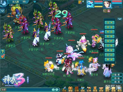 其中,天策守卫会清除主怪的横扫虚弱状态,万兽岭守卫会为主怪附加状态使其飞击两次,东海龙宫守卫会随机标记三个玩家单位使其进入水土虚弱状态。不同守卫的全新技能,将为岁星生肖战斗增添更多挑战乐趣,相信《神武3》电脑版将再次掀起全服观战生肖的热潮。