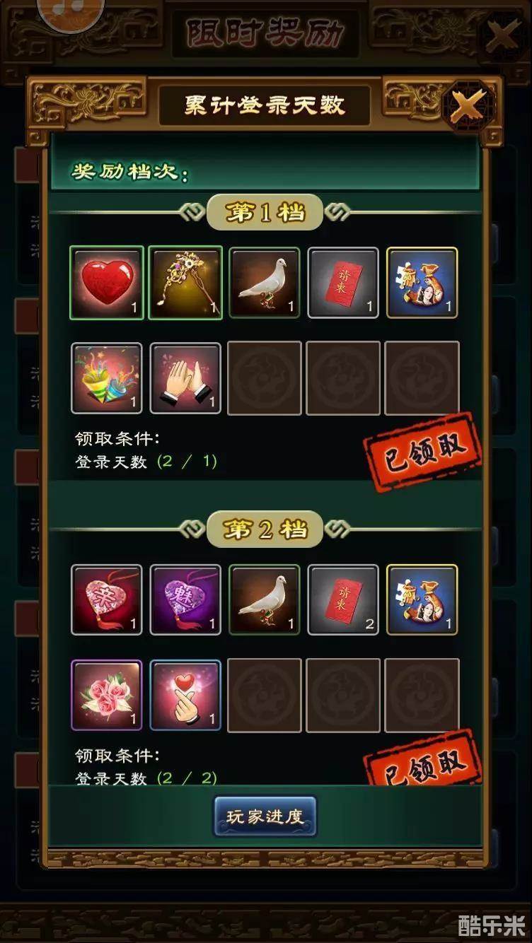 当然啦,每天都有的登陆奖品可不止樊梨花小姐姐的皮肤碎片哦,还有其他精彩好礼,书籍、技能经验、卷轴礼包、皮肤碎片、元宝、亲密度、银两,应有尽有!累计天数满五天,即可领取最后一天的豪华大礼包!