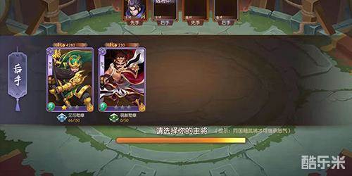 先来说说排位选人阶段,双方可上阵两名武将,次第交战。而这里面就涉及到三国尤为推崇的运筹帷幄之术了。玩家需要根据先后手的关系,部署相应的武将去战斗。
