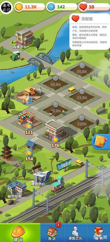 玩家在度过了游戏的前期之后就尽量不要快速滑动屏幕来收集金币了,等建筑积攒了一定量的金币之后一次性收取,大概率会掉落贡献值。