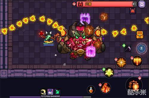 第二个就是这一招,炎魔没血时会瞬移到地图上方从上一直往下吐横向火球。只要不慌一个疾跑吃他一下火球跑到上面去,就不会被秒。