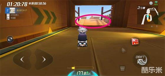 而地图中的宝藏位置在地图终点前唯一大跳台的捷径高台上,需注意的是在如下图所示的跳台上,我们需使用氮气冲刺到上空中的高台上,而不能落到下面一层,因为宝箱就在这个平台的角落里面。