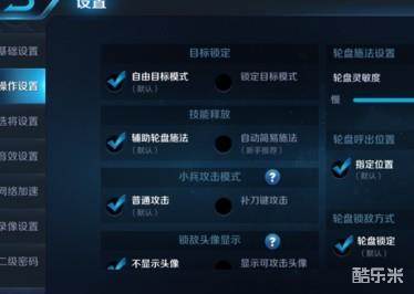 分为:轮盘锁定和头像锁定,小伙伴通过这个设置选择头像锁定,这样可以将目标技能拖至头像上精确释放。