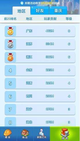 当玩家们搜集的绘图越来越多,提供的贡献值也会越来越高,就会推动你所在的家乡在全国排行榜上处于领先地位,同时这种贡献值也会推动整个“中国之光”的持续解锁更多的绘图,与此同时也会为你的虚拟城市提供更多的收益。