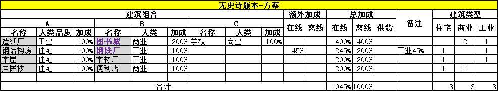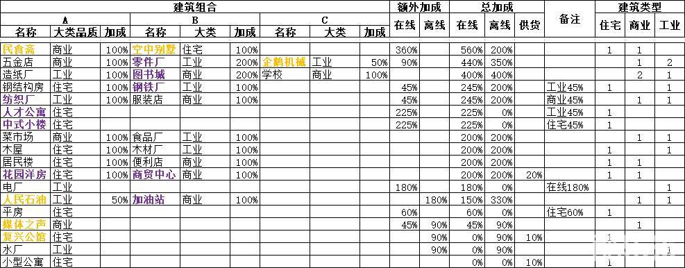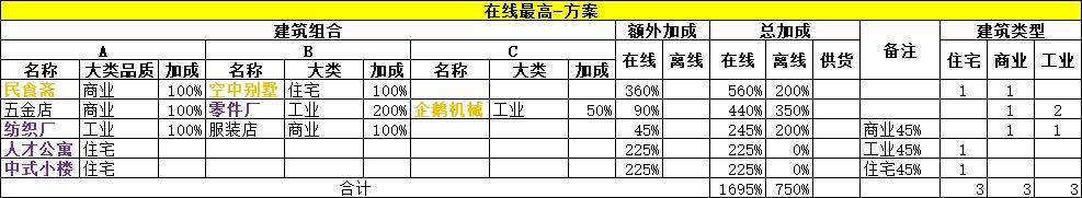 只考虑建筑之间的加成,其他的星级、buff加成暂不考虑