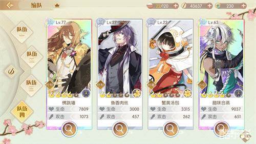aoe(助战还可以带一个)负责清小怪,佛跳墙的话可以眩晕提供容错率(主要是因为我就这一个)鱼香肉丝先手控制(满破或者加一点效果命中),蟹黄汤包加回合提供debuff,腊味合蒸主要负责加回合(效果命中装备主要给他),鱼香肉丝和腊味合蒸是必要的