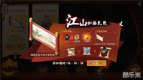 本次限时放送的两款礼包各具特色,性价比满满,一边是如梦如诗般的江山如画礼包,内含颜值赛高功能强大的千里江山墙饰,拥有制造装备时间减少5%的超高加成,附送的珍稀图纸盈利点也是全额拉满,并且还具有增加攻击与速度的增益天赋,让人心动不已。