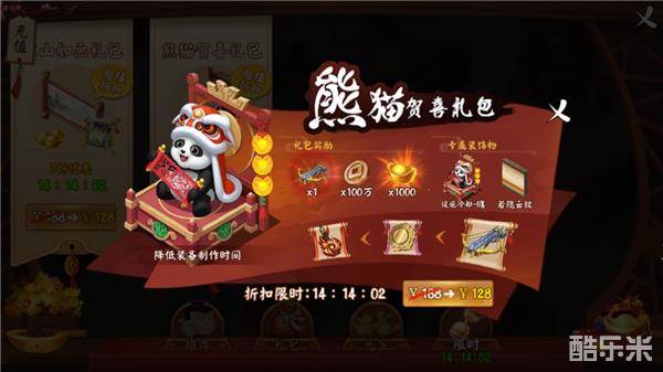 另一边则是被誉为新一代造钱机器的熊猫贺喜礼包,附送的装饰可爱圆润且契合佳节氛围,无形之中增加了玩家的气运,其中的珍稀图纸更是囊括了前中后期所有过渡的神器,从此一夜暴富不再是梦想。这两款礼包,在假期不仅限时放送还有打折优惠,对此,小编只想说,我全都要!