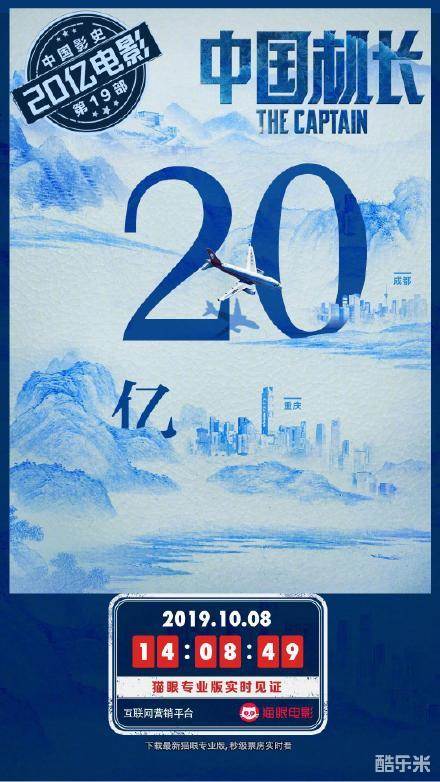 恭喜《中国机长》成为中国影史上第19部票房过20亿的影片!
