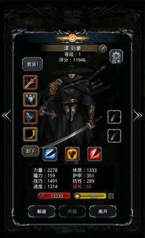 1.剑豪(亘古剑)(月之铠)(体力速亘古冠)(号角)(力量命中战利品*2)(保证有45面板命中)
