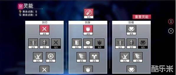 在游戏中灵能加点分为三种,分别是剑刃、剑身、剑魂。但是必须将剑之力加满5点之后才能开启灵能加点分配。剑之力点满就可以给角色增加大量的攻击力防御力和生命值了。之后在选择点其他属性加成。剑刃主要增加角色伤害比如光攻击、暗攻击、攻击力、暴击等,剑身主要是增加角色防御比如防御力、光抗性、暗抗性、闪避等,剑魂增加生命值等。目前灵能点可以通过任务升级来获得。