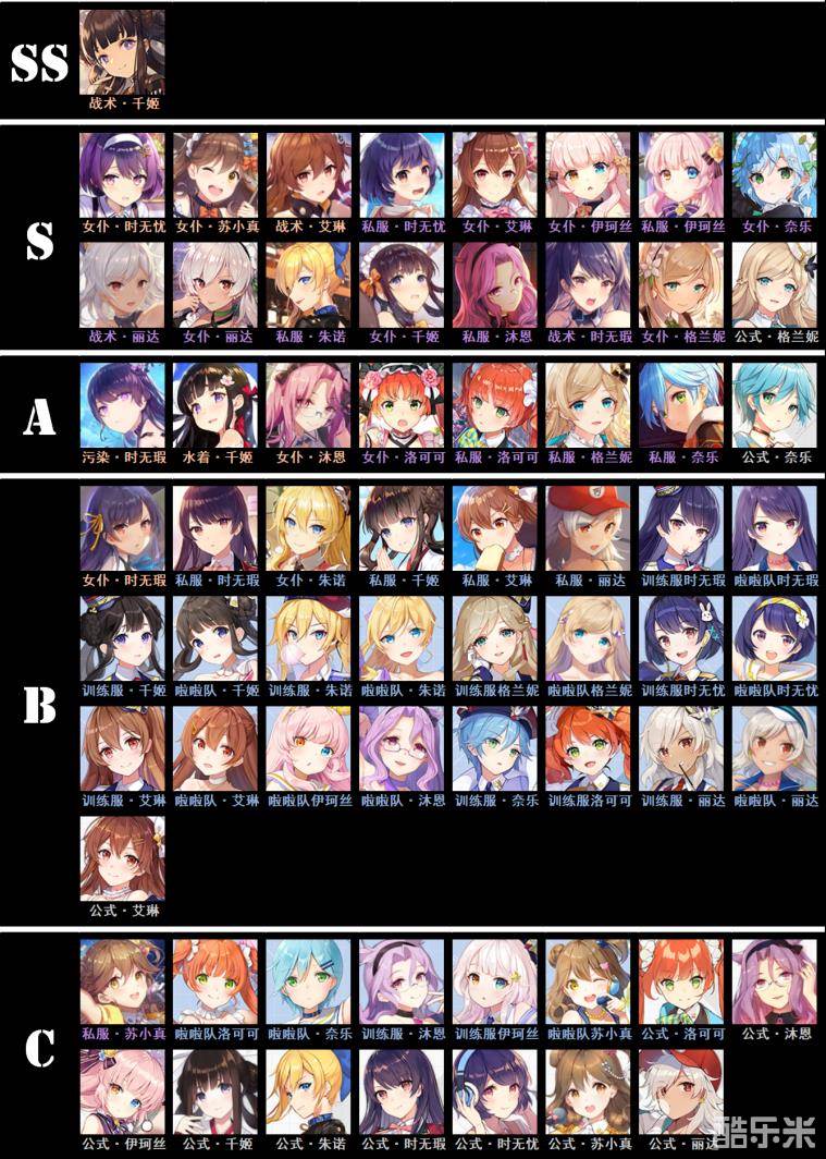 ②本次测试期间有针对版本较为超模/破格的角色卡,划分为SS、S、A、B、C共计5个等级。