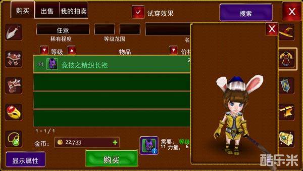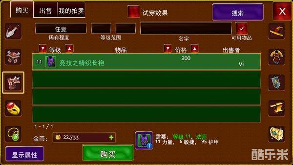 点击选中物品,可查看物品详细属性,然后选择购买。