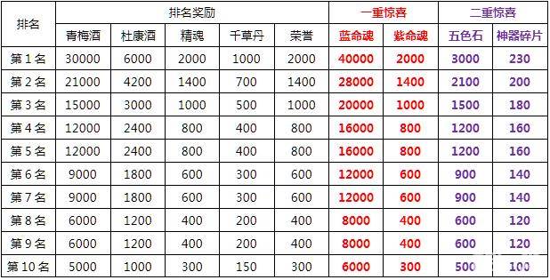 3. 活动期间累计消耗金币达到20000金币,可以额外领取一重惊喜奖励(蓝命魂,紫命魂);