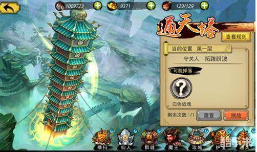 “通天塔”活动是游戏后期的高阶活动,通过特殊的数据读取原则,把服务器中所有玩家的战斗力取出来,根据玩家的战斗力,用特定的游戏规则,产生10名通天塔守卫,玩家战胜守卫获得“战魂”。普通玩家每天只有1次机会,和VIP等级有关,V0--V5 都是 1次,V6--V10是2次,V11上可以重置3次。玩家等级达到40级,即可参加“通天塔”活动。