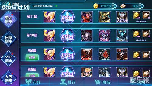 为了让《织女星计划》的玩家打造星际最强的机甲,研发组准备了一系列副本玩法,关卡战役、单人副本、日常副本、种族副本等,各种副本掉落的海量胜利品,装备、星币、质子反应堆等让玩家实力更高一级。不同的副本开放的等级不同,副本等级越高,掉落的奖励也越高。想打造星际最强机甲, 向着更高等级的副本前进吧!