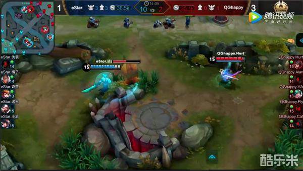 红色方李元芳跟杨戬面对敌方多人推塔,两位英雄都选择甩出大招,迅速将兵线清理,瓦解掉了对手的进攻。