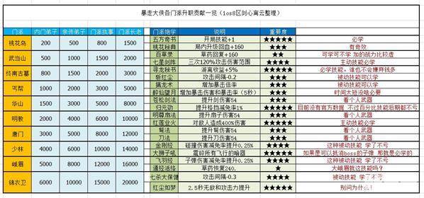 ★门派技能,这里要重点说一下,帮贡的重要程度就不需多说,重点就是要学习门派特技,说去门派只学前三个技能的都是坑,等你玩了一段时间就知道这种玩法得不偿失,个人觉得循序渐进最重要,特技都需要学全,在一个门派攒够下个门派长老需要的帮贡在进行转移,每天360×3=1080帮贡不香吗,而且越到后面工资越高,对于需要海量金叶子的你来说,这才是正确的打开方式,比你花钱兑换装备要合理的多。关于门派技能的提升,后期需要的金叶子非常多,可以优先装备,等进入瓶颈以后在进行技能的提升(毕竟加的都是固定数值)