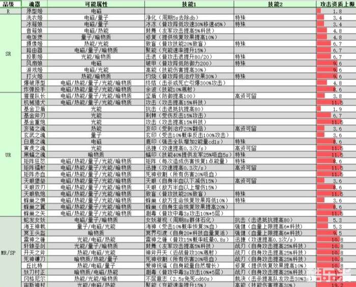 1.只有MR和SP魂器有两个技能,其他品级的魂器我在技能2里给出了建议,特殊表示技能特别,应该培养一个