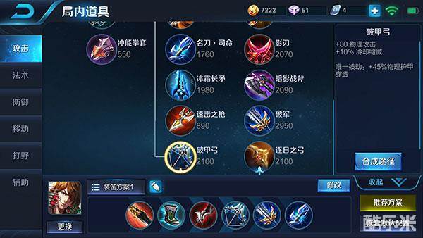 中期装备的选择,推荐做出泣血之刃+破甲弓的组合。泣血之刃能为李白带来高额的物理吸血属性,提高程度的提高了他的续航能力,让他又能单刷主宰或者暴君。而破甲弓可以提高李白应对敌方前排的能力,物理穿透属性让他的输出伤害能威胁到敌方每一个人。