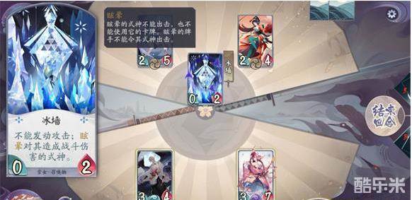 2、第二回合因为敌方战斗区“冰墙”的存在,我们式神发动攻击会被“眩晕",“眩晕”状态的式神无法使用式神的对应卡牌,且攻击无法对敌方式神和牌手造成伤害,所以我们选择“空过”,等待“倒计时”的结束。
