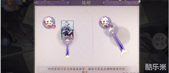 1、我们需要明白“投射”的伤害机制,若敌方战斗区有式神,那投射伤害会作用于战斗区式神,若战斗区无式神则会直接对敌方牌手造成伤害,弄懂“投射”的伤害机制才能学会在对战中运用它。